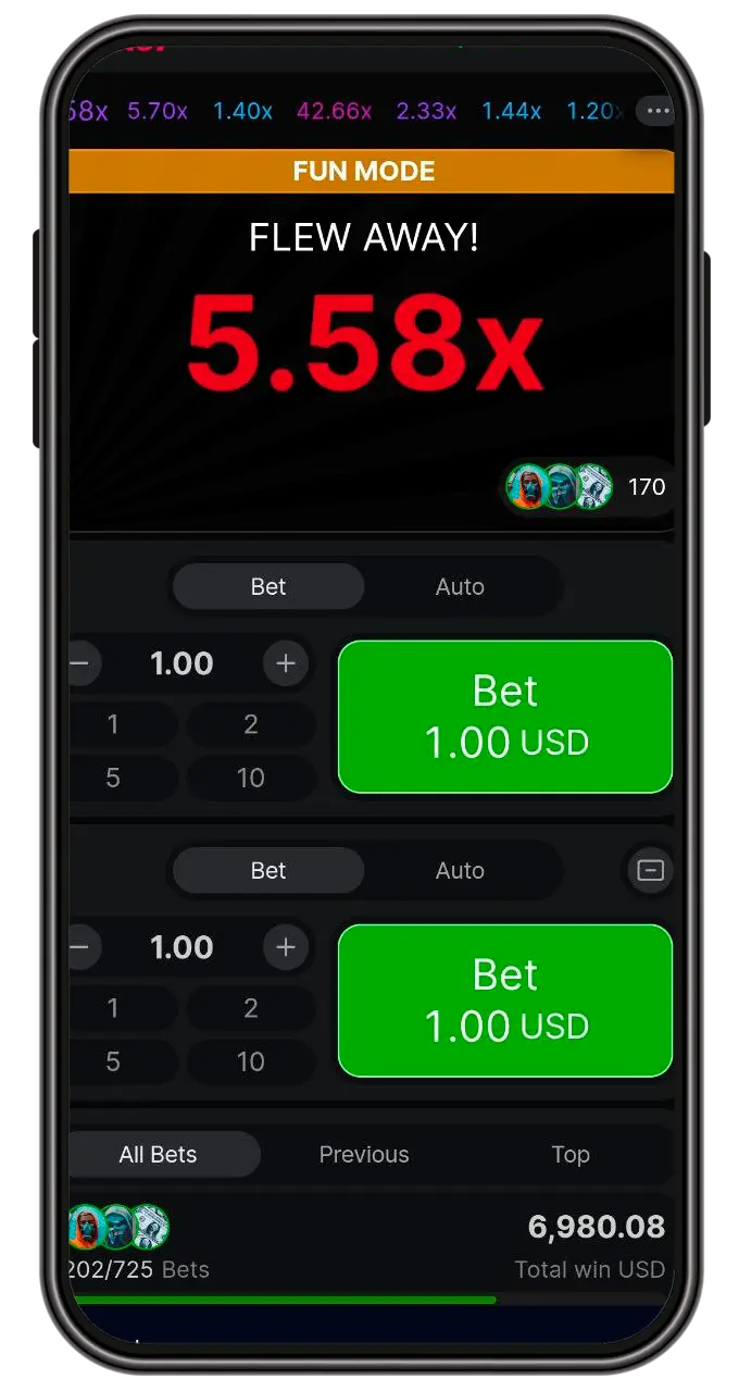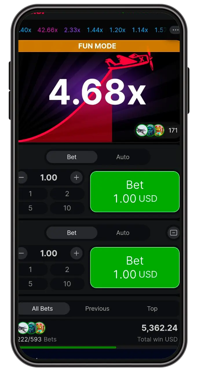 • Use Dual bets. There are many strategies for using two bets in a game at the same time. For example, bets of the same size but with cash out at different multipliers. Or bets big and small, but with output on one multiplier. The main thing is that two bets at the same time give you a large field for creativity and strategy.